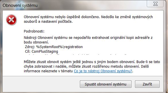 Nefunguje obnova systému, windows 7, objevuje se tahle zpráva: