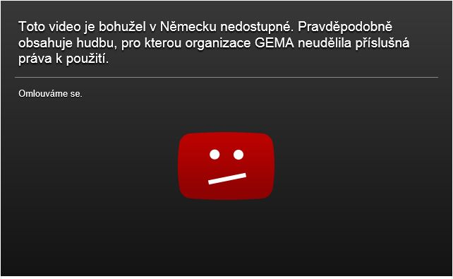 Re: YOUTUBE error - toto video je v Německu nedostupné