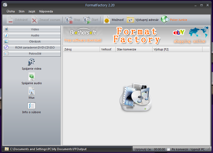 Multifunkční multimediální konvertor souborů, který vám umožní provést téměř jakýkoliv převod nějakého multimediálního souboru. Podporuje totiž obrovské množství formátů jak z audio sekce, tak i z video a grafické.