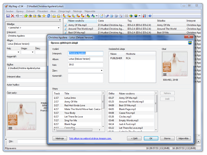 Podstatně pohodlnější je ovšem stažení kýžených informací z Internetu. Program spolupracuje s několika zdroji včetně oblíbených databází FreeDB a MusicBrainz nebo známého e-shopu Amazon.com. Samozřejmě není problém si vybrané údaje stáhnout z Internetu a pak si je upravit dle potřeby. V tomto ohledu dává program naprostou volnost.