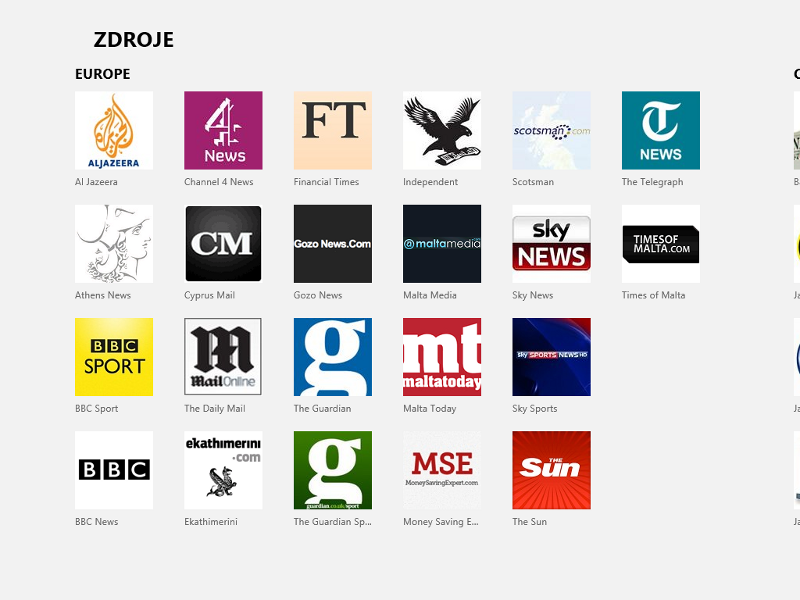 Dlužno dodat, že zmíněny byly ty použitelnější aplikace, které Modern UI nabízí. Například aplikace Zprávy (News), která má být zpravodajským agregátorem, neposkytuje informace ze žádného českého zpravodajského serveru (mnohé již ale mají vlastní aplikaci ve Windows Store) a Evropu pokrývá jen několika převážně britskými servery. Více zdrojů informací Microsoft nabízí i pro Afriku, což je vážně kuriózní.