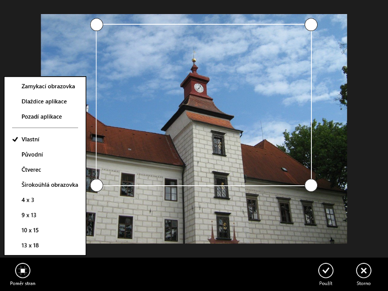 O něco lépe si vede aplikace Fotky (Photos), která je schopná prohlížet jak fotky uložené na pevném disku počítače, tak fotky z úložiště SkyDrive, služby Flickr nebo sociální sítě Facebook. Po aktualizaci navíc i z jiných počítačů v místní síti resp. domácí skupině anebo síťového úložiště. Jenže jde téměř výhradně o čistokrevný prohlížeč.