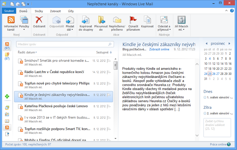 Součástí programu je též integrovaná RSS čtečka pro odběr nejčerstvějšího obsahu z webových magazínů, zpravodajských serverů a dalších internetových zdrojů. Kdo odebírá více RSS kanálů z různých zdrojů, zřejmě ocení možnost jejich třídění do složek, přičemž pro každý si v případě potřeby lze nastavit specifickou dobu aktualizace. Odebraný obsah z RSS kanálů lze samozřejmě jednoduše prohledávat.