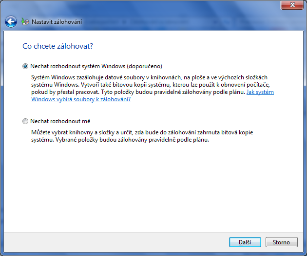 Integrovaný zálohovací program ve Windows 7 dovede v nastavitelných intervalech provádět zálohu zcela automaticky. Složky a soubory určené k záloze je možné nechat vybrat automaticky systém, ale lepší je pro jistotu provést manuální nastavení, protože ne každý musí mít své důležité soubory tam, kde systém předpokládá. Ten totiž operuje s předpokladem, že uživatelé aktivně používají knihovny pro ukládání svých dat. Ovšem zdaleka ne všichni uživatelé na tento nový způsob třídění souborů přešli.