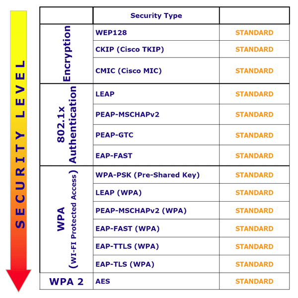 • - WPA2: Nejlepší ze všech 3, dosud neprolomeno. Májí s ním ale problém starší zařízení a OS do Windows XP SP3
