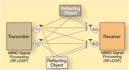 Použitím více antén a vícecestným šířením signálu (počítání s odrazy od překážek, vlastní interferencí apod.) dochází ke zvětšení propustnosti sítě a tedy vyšším rychlostem bezdrátového přenosu. Router s MIMO je tedy rychlejší, ale i stabilnější.