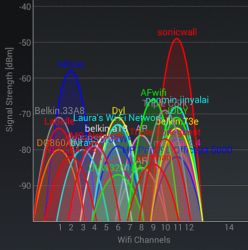 Pro analýzu, jak to vlastně ve vašem okolí vypadá můžete použít program inSSIDer. Majitelé chytrých telefonů z androidem mohou využít WiFi analyzer, který přehledně ukáže okolní WiFi sítě. V programu inSSIDer to vypadá takto: Co lze vyčíst?