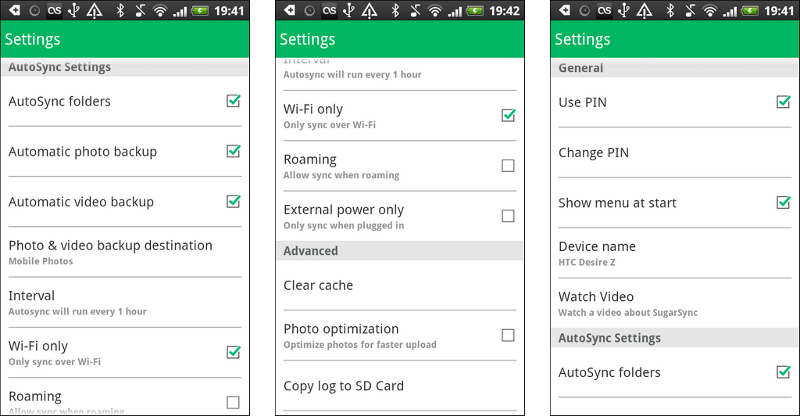 Aplikace SugarSync podporuje také své volitelné uzamčení. Pro přístup k ní a potažmo datům v cloudu je pak nutné zadat čtyřmístný PIN. Ten je dobrým kompromisem mezi bezpečnostní a komfortem, protože data jsou chráněná, aniž by bylo nutné se neustále odhlašovat a přihlašovat se složitým zadáváním e-mailové adresy a dlouhého hesla.