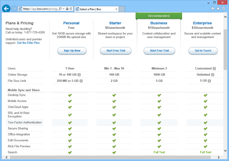 Box.com se dnes profiluje spíše jako úložiště pro týmové a potažmo firemní využití. Pro osobní potřebu nabízí zdarma 10 GB prostoru ihned po bezplatné registraci. To je sice pětkrát více místa než poskytuje notoricky známý Dropbox, ale ve srovnání s dalšími službami na trhu to není zase tak výjimečná kapacita. Pro osobní využití se nabízí jediná možnost navýšení: 100 GB za 10 USD měsíčně, což není vůbec špatná nabídka.