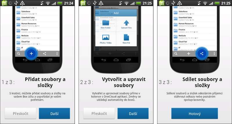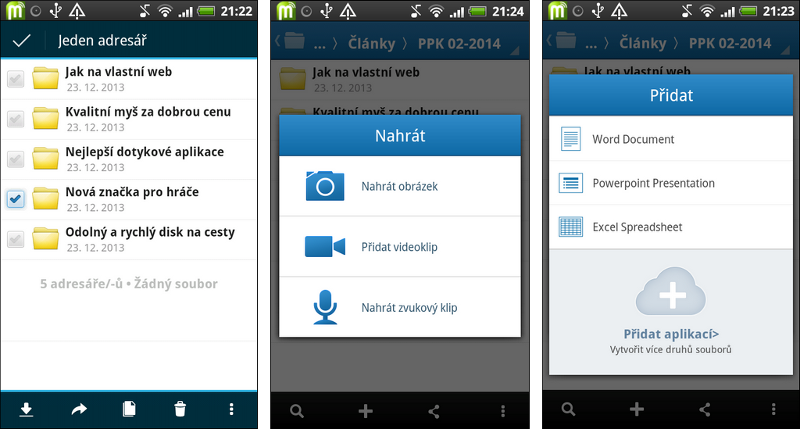 Chybí však automatická synchronizace (resp. záloha) pořízených fotek anebo videí, což je dnes u konkurence víceméně běžná funkce. Aplikace Box.com alespoň umožňuje pořizovat videa a fotky jednotlivě, které pak rovnou míří do internetového úložiště. Takto lze vytvářet i zvukové nahrávky, takže mobilní aplikace Box.com poslouží jako diktafon, který poznámky ukládá rovnou do internetového úložiště synchronizovaného s osobními počítači, což je šikovná funkce.