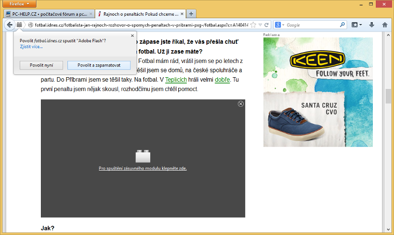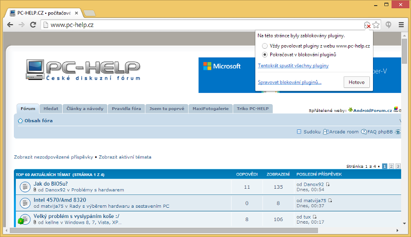 Podobné je to i s další prvky na webové stránce, které vyžadují některý z plug-inů. Samozřejmě, že někdy prvky nejsou přímo viditelné, takže místo nich není možné zobrazit zástupný objekt. Z tohoto důvodu Google Chrome symbolem v adresním řádku upozorňuje na skutečnost, že si webová stránka vyžaduje některý z plug-inů. Kliknutím na tento symbol lze plug-iny aktivovat.