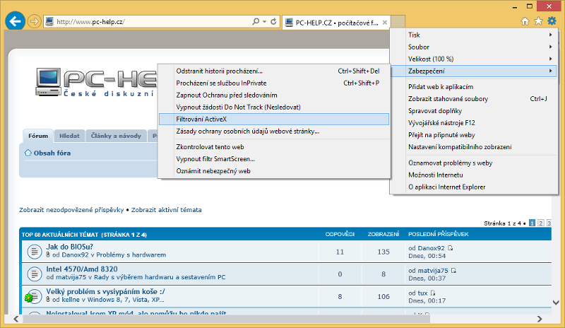Internet Explorer sice podporuje aktivaci plug-inů až na vyžádání díky funkci Filtrace ActiveX, ale problém je v tom, že aktivuje vždy veškeré povolené plug-iny. Nikoliv jen ten plug-in, který je třeba pro konkrétní prvek na webové stránce (jako je například video). Navíc při této hromadné aktivaci plug-inů dojde k znovunačtení stránky, což není vůbec dobré.