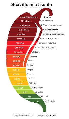 Ono je ale problém to celkem udělat v % nebo ve stupnici 5 papriček, protože pro někoho kdo chilli moc nekonzumuje je 50 000 SHU extrémní záhul, přitom tam mám nejsilnější papričky na světě s 1 200 000 SHU