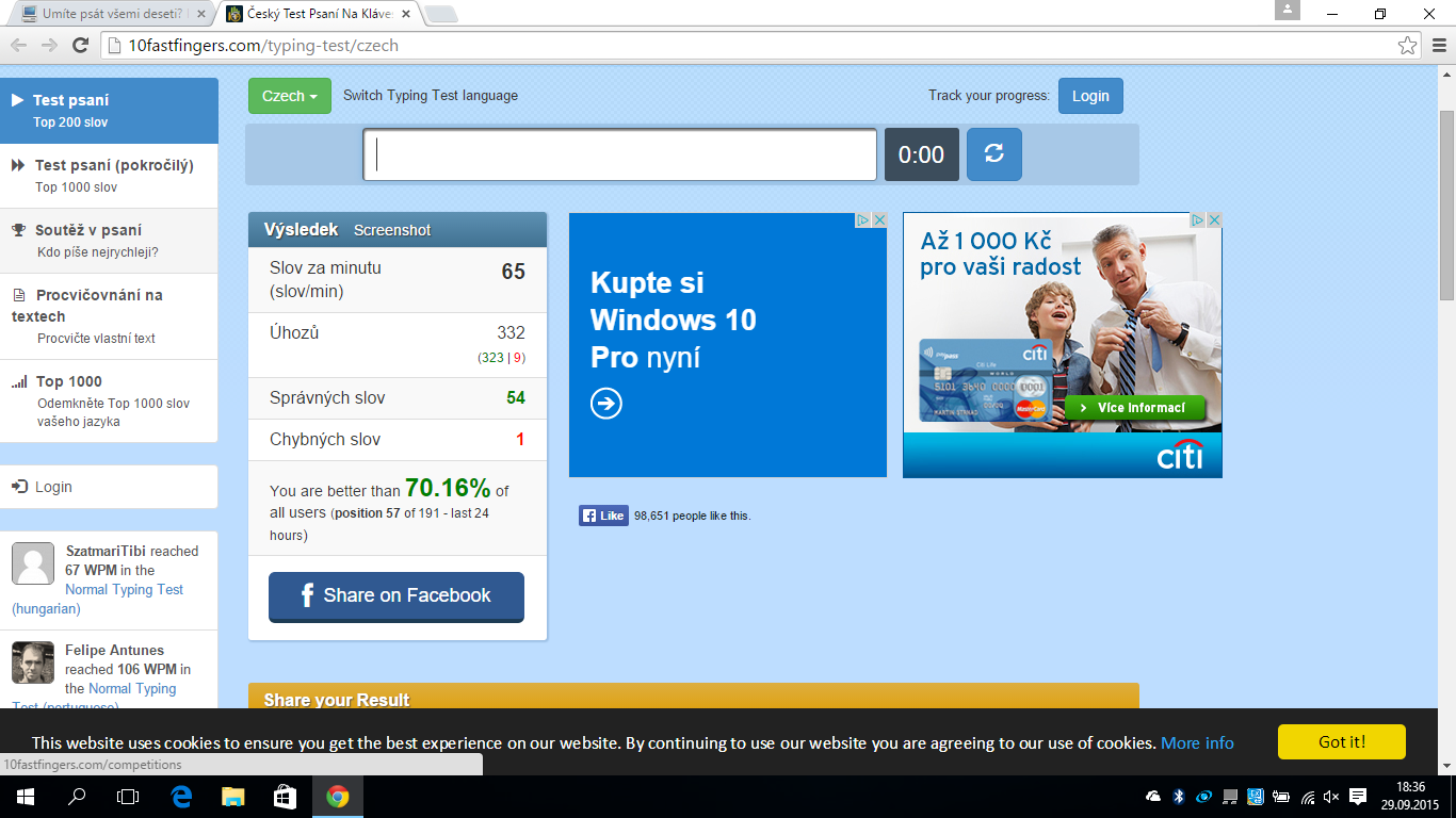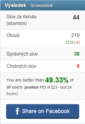 Tak pro mě je úspěch počet překlepů, protože já dokážu udělat překlep v každym druhym slově když se nedaří