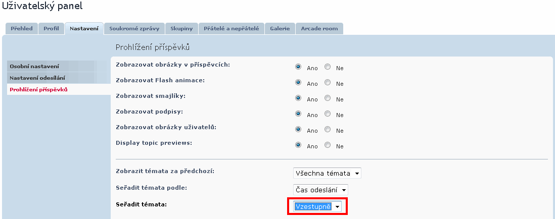 JAK ZMĚNIT ŘAZENÍ PŘÍSPĚVKŮ V DISKUZI