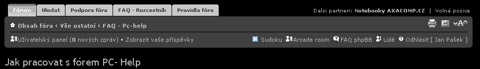 Záložky "Fórum, Hledat, Podpora fóra, FAQ - Rozcestník, Pravidla Fóra"