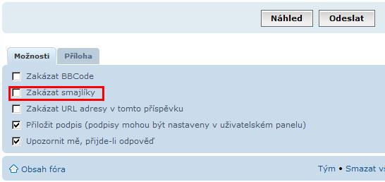 Možnosti odpovědi - zakázat smajlíky - pro zvětšení klikni