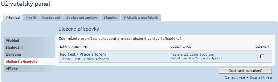 "Uživ. panel" - uložené příspěvky - pro zvětšení klikni