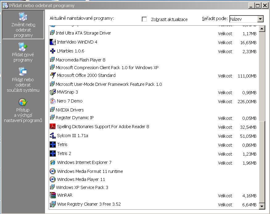 Windows vytváří přehled nainstalovaných programů v nabídce „Přidat - odebrat programy“….