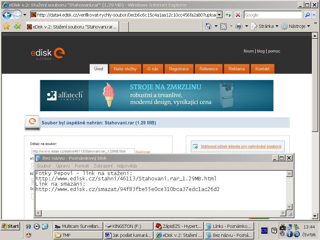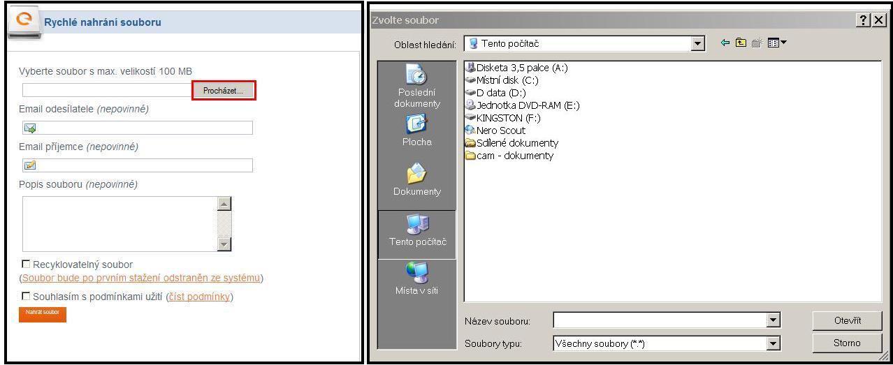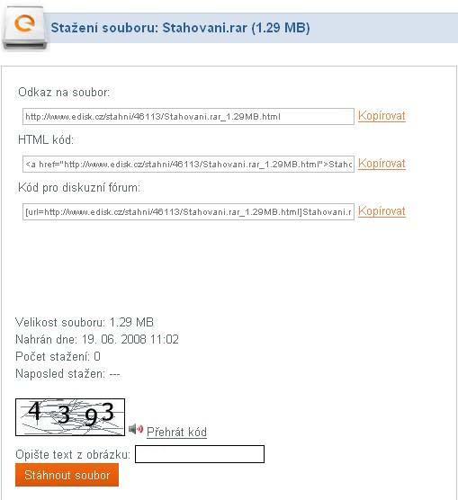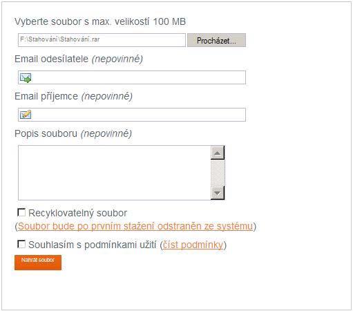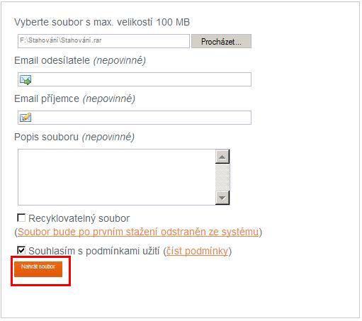 I my využijeme tuto volbu, neboť i kapacita uploadu (nahrání) pro jeden soubor je na edisk omezena na 100