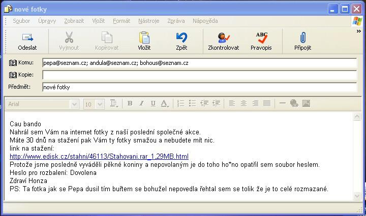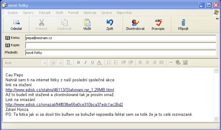 K této volbě opět poznámečka. Samospustitelné soubory, tedy programy, mohou být virem a záleží na nastavení ochrany PC (antivir atp.), zdali povolí spuštění. Příjemce může mít se spuštěním takového souboru problém.