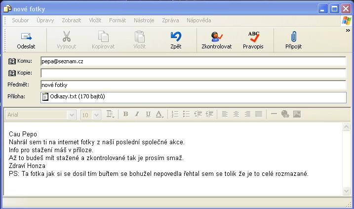 Volbu tedy v našem případě použijeme jen tehdy, pokud soubor posíláme někomu, u koho si nejsme jisti, že má program, který mu soubor rozbalí.