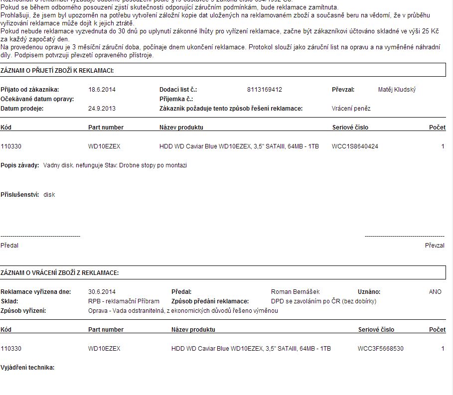 Zdravím vás, mám menší problém protože jsem měl disk od značky WD tak tento disk byl totálně KO tak jsem jim ho poslal že chcu vrátit peníze z5