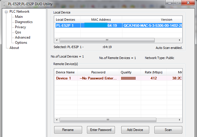 Samotné powerline adaptéry nepožadují žádné nastavení. Po el. síti lze provozovat i více sítí, pak lze adaptéry "spárovat" pomocí tlačítka "Security". Stisknete tlačítko na těch adaptérech, které k sobě mají patřit - ony se mezi sebou "domluví" a je hotovo. Pokud byste však chtěli nastavit další vychytávky, pak budete potřebovat Ovládací SW PL-E52P utility. Zde bych měl malou výtku - uvedený sw umí pracovat jen s adaptérem připojeným k PC. Další adaptéry v síti bohužel nenajde. Je tedy třeba jej nainstalovat na všechny počítače, které jsou připojeny k adaptéru, nebo na notebook a postupně je obejít, či adaptéry po nastavení přehodit.