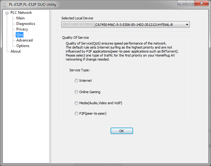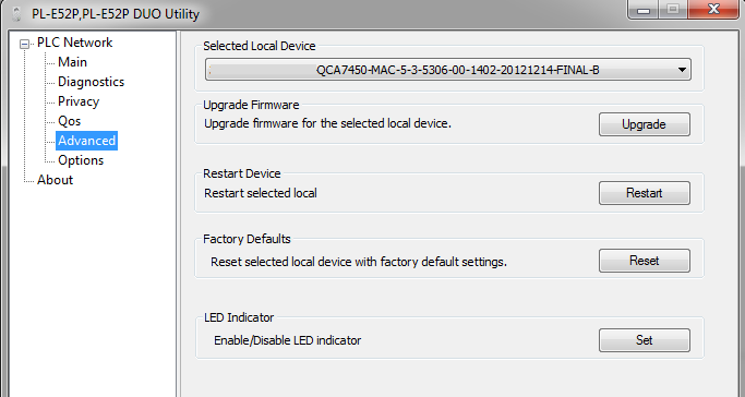 A co utility umí? V základním menu uvidíte který adaptér spravujete, jeho MAC adresu, rychlost na které pracuje a možnost zaheslování. Můžete také zvolit název sítě, což se hodí v případě, kdy máte powerlinů více a proudí přes ně více sítí. Pochválit musím možnost nastavení QoS, to určitě uvítáte při provozu na větší vzdálenost, kdy je menší rychlost přenosu. V nabídce rozšířené (Advanced) najdete možnost upgrade firmwaru, restart adaptéru, reset do továrního nastavení, a koho obtěžuje blikání indikačních LED, může je zde vypnout. Vlastní testování: