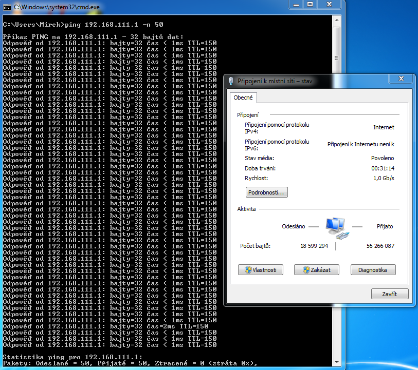 Byl jsem dotázán, jak je to s powerliny ohledně spolehlivosti pingů. Zde je tedy výsledek testování: Kvůli vypovídající hodnotě jsem nechal pingat 50x. Výsledek je myslím naprosto jasný. Zatímco LAN je pod 1ms v 98% případů a v jednom 2ms, u PowerLine je ve většině případů ping 2ms, pouze v jediném případě přes 10ms, u WiFi jeden paket neprošel vůbec, jeden je nad 100ms, v osmi případech nad 10ms.