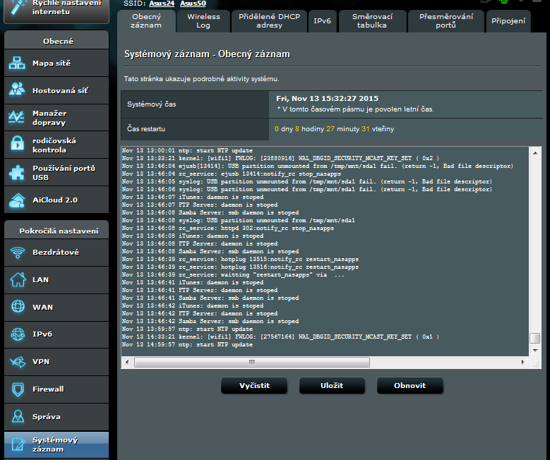 - Systémový záznam - koho baví číst logy, tak zde si přijde na své. Pro ty, kdo neradi, tak si alespoň mohou zkontrolovat, kdo se připojil na jejich WiFi.
