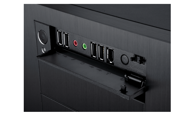 Navíc není potřeba samostatný panel pro doplnění čelních portů, protože skříň má již vlastní panel s dvojicí portů USB 2.0 a stejným počtem portů USB 3.0, jedním portem FireWire, výstupem na sluchátka a vstupem pro mikrofon. K dokonalosti chybí eSATA. Porty jsou schované za panelem, takže se do nich zbytečně nepráší, když se nepoužívají.