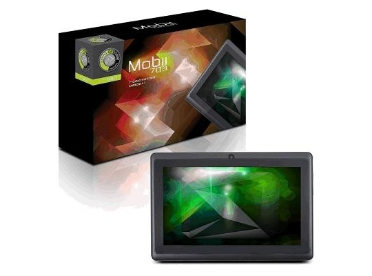 Není žádným tajemstvím, že velikost a kvalita displeje ze všech faktorů nejvíce promlouvá do výrobní a samozřejmě i prodejní ceny. MOBII 703 se řadí mezi kompaktní tablety s displejem o přibližné úhlopříčce sedm palců. Samozřejmě jde o kapacitní multidotykový displej, jak je pro současné tablety běžné. Najednou zpracuje až pět různých dotyků.