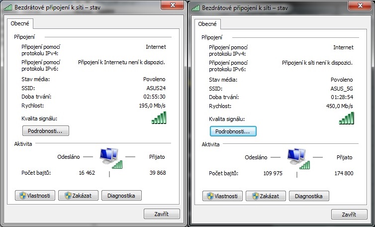 - pásmo 5GHz je volnější, nicméně samotný kmitočet má nižší průchodnost materiály, než 2,4GHz. Pokud tedy ntb máš přes dvě místnosti, je možné, že je rychlost pomalejší.