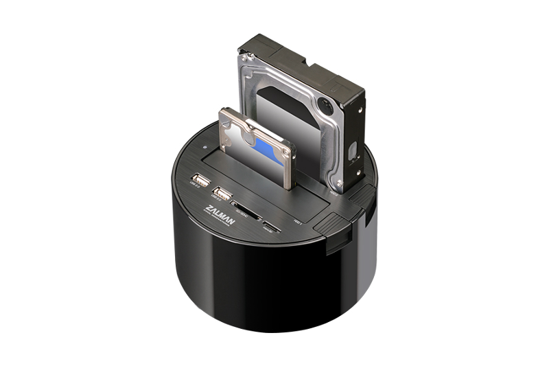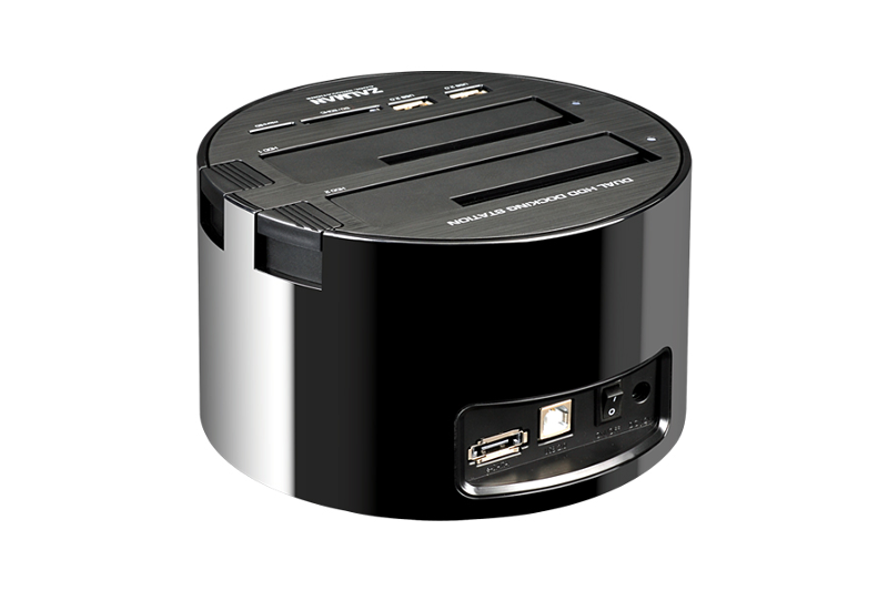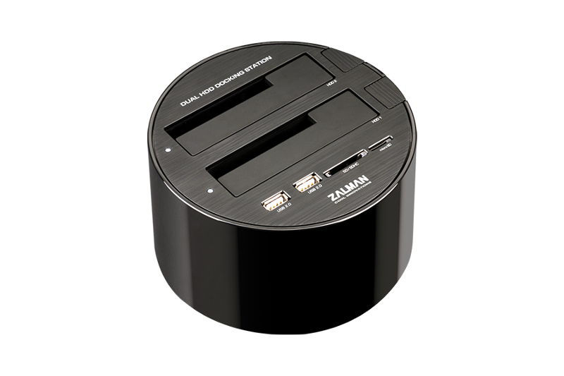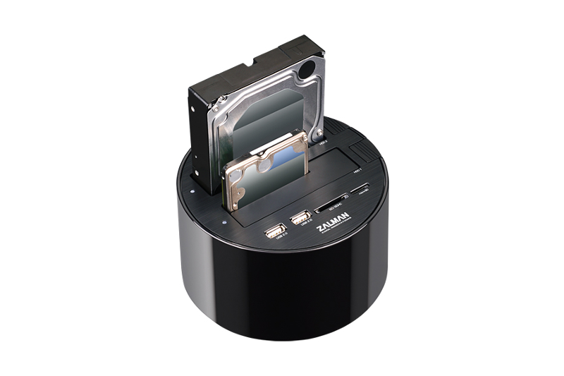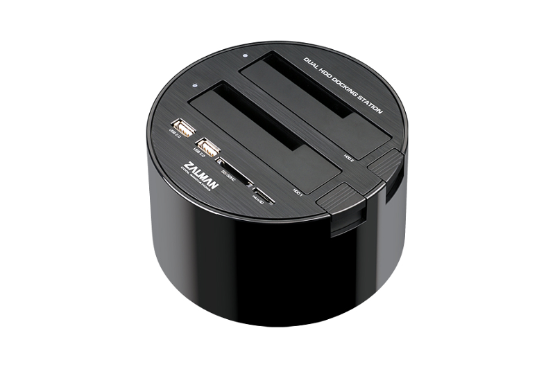 Zalman ZM-MH200 HUB je prvořadě externí dokovací stanice pro pevné disky. Má dvě šachty, do nichž lze rychle a snadno zasunout disk ve vertikální poloze. S replikátorem portů je možné obě šachty využívat současně, přičemž každá podporuje pevný disk o kapacitě až 3 TB. Dokovací stanice tudíž najednou může obsluhovat disky o celkové kapacitě až 6 TB (2 x 3 TB).