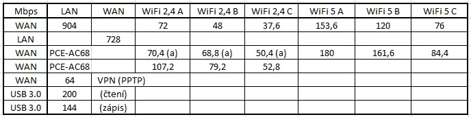 K měření propustnosti WAN/LAN - zde narážím na max. možnosti mé sítě, takže naměřený výsledek neodpovídá skutečným možnostem routeru - ve skutečnosti bude rychlejší.