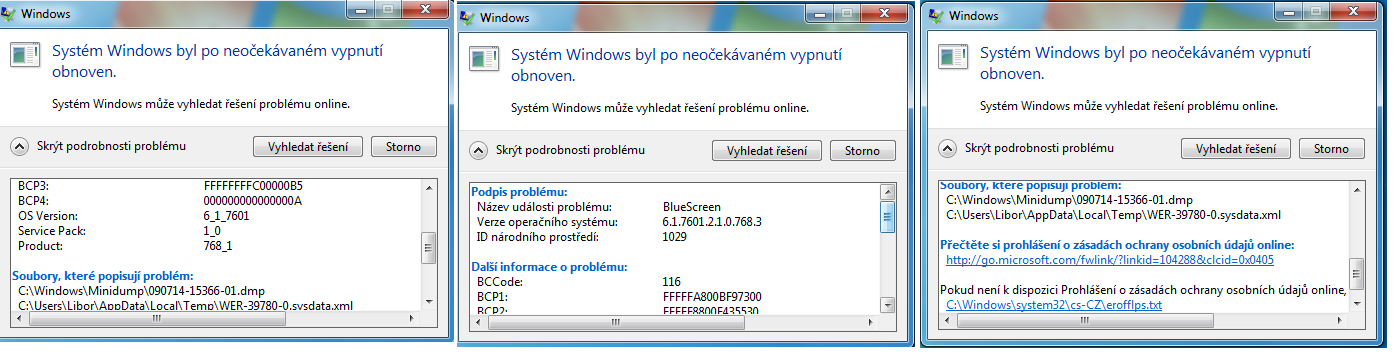 Re: Pomoc při opravě chyby blue screen.