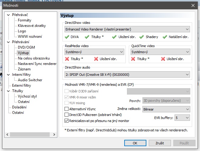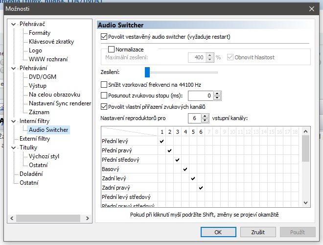 a další nastavení je,když klikneš do obrazu pravým a dáš-filtry a donastavíš zvukový dekoder.Pokud máš zvukovku jen na základní desce tak výstup jen 16bit a pokud máš kvalitnější tak donastav podle ní.Týká se to verze 16 nebo BE.