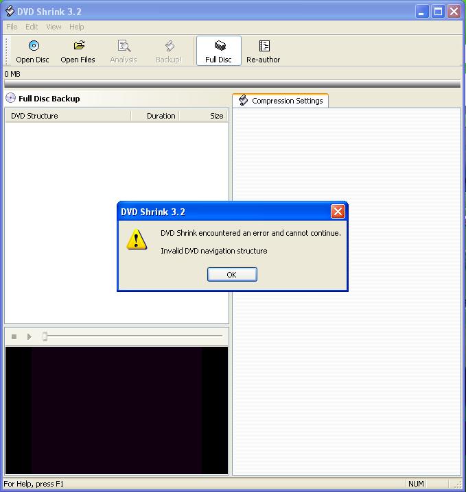 a chyba- DVD Shrink encountered an error and cannot continue.