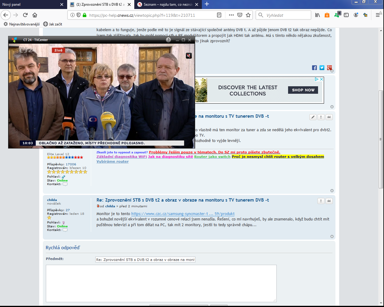 a bohužel novější ekvivalent v rozumné cenové relaci jsem nenašla. Řešení, co mi navrhuješ, by ale znamenalo, když budu chtít mít puštěnou televizi a při tom dělat na PC, tak mít 2 monitory, jestli to tedy správně chápu...