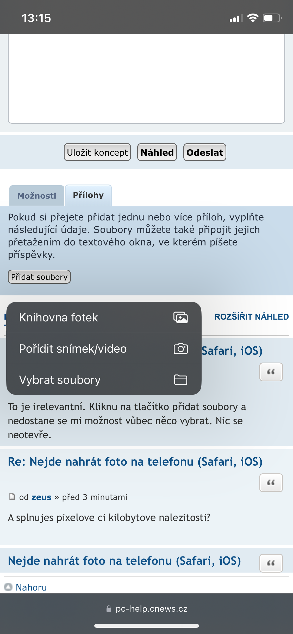 Re: Nejde nahrát foto na telefonu (Safari, iOS)
