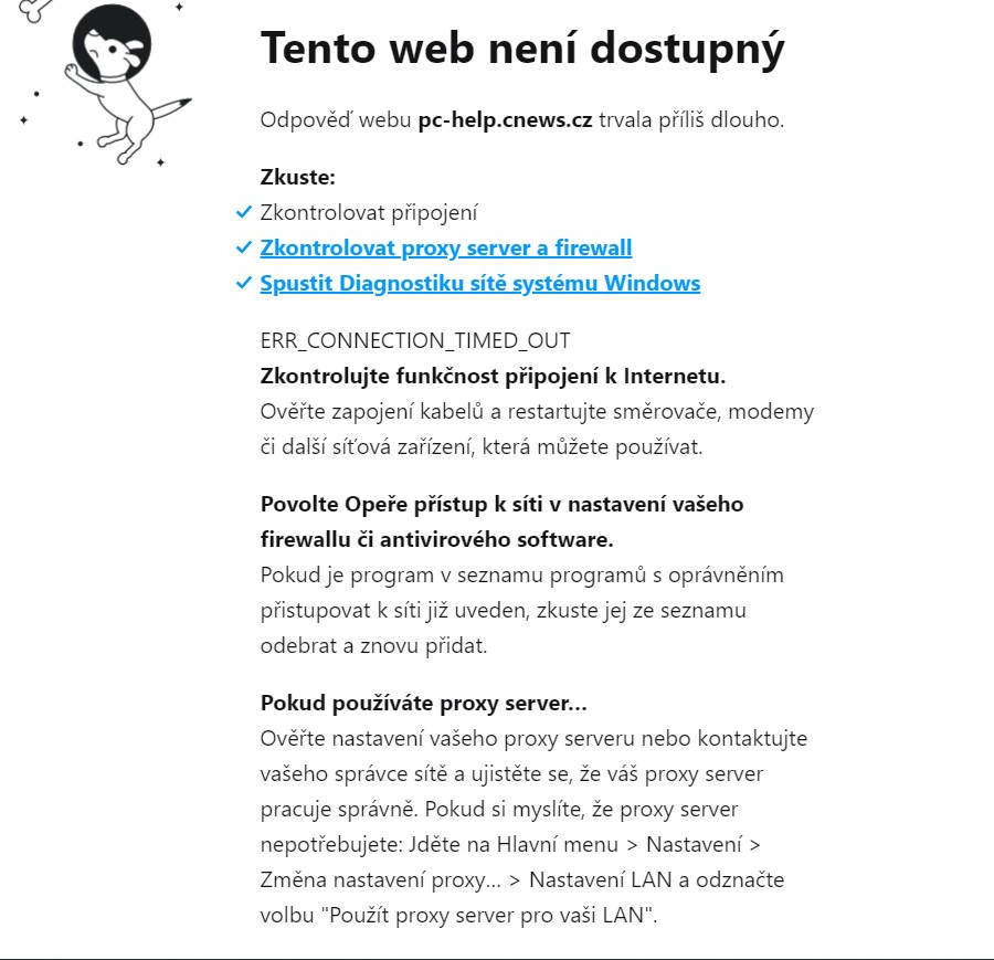 trápí mě výpadky při prohlížení webu