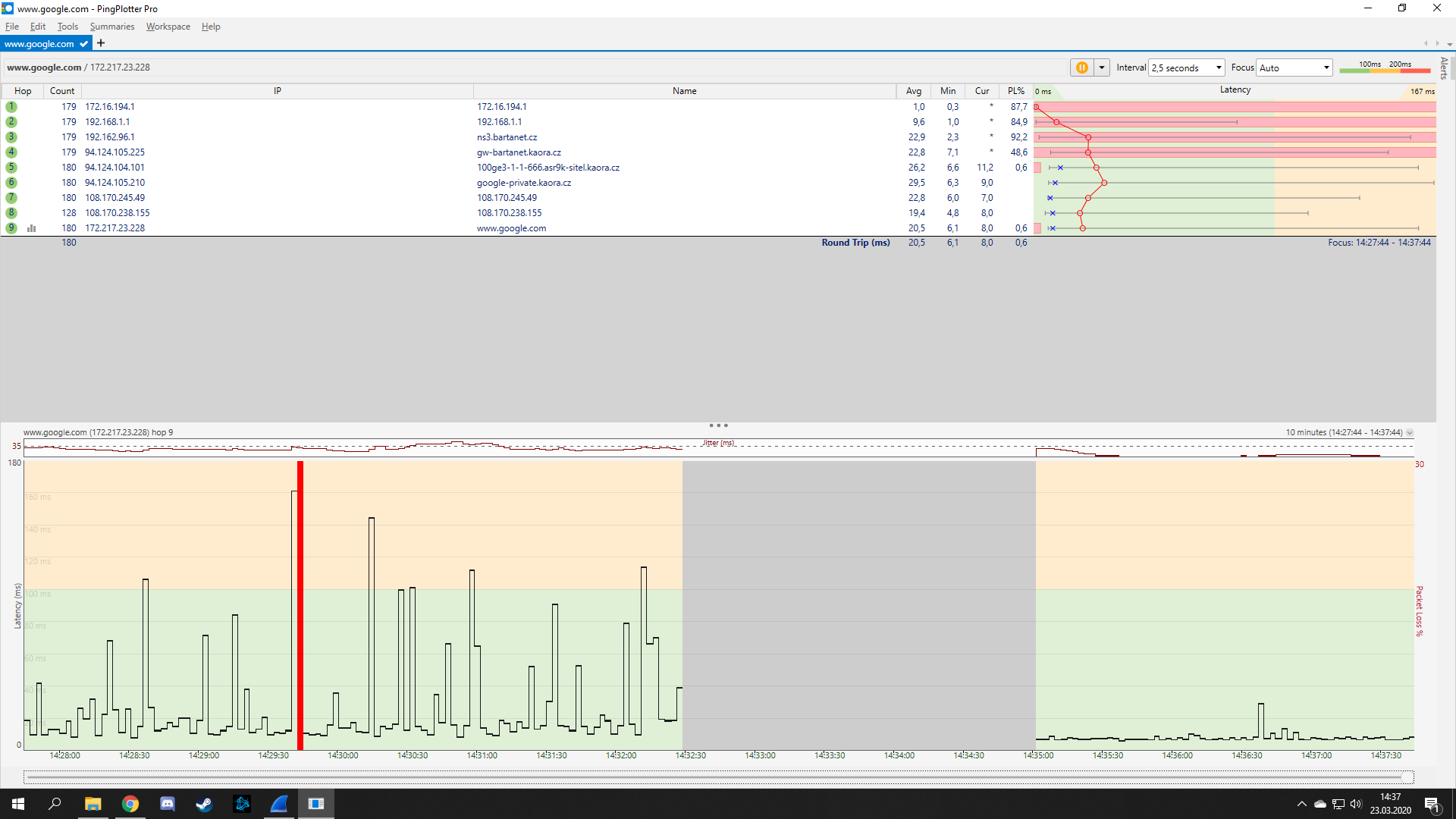 Myslíte takto? + Přiložil jsem Pingplotter na google.com, ta ztráta tam je pořád ikdyž nehraji a víceméně celý den.