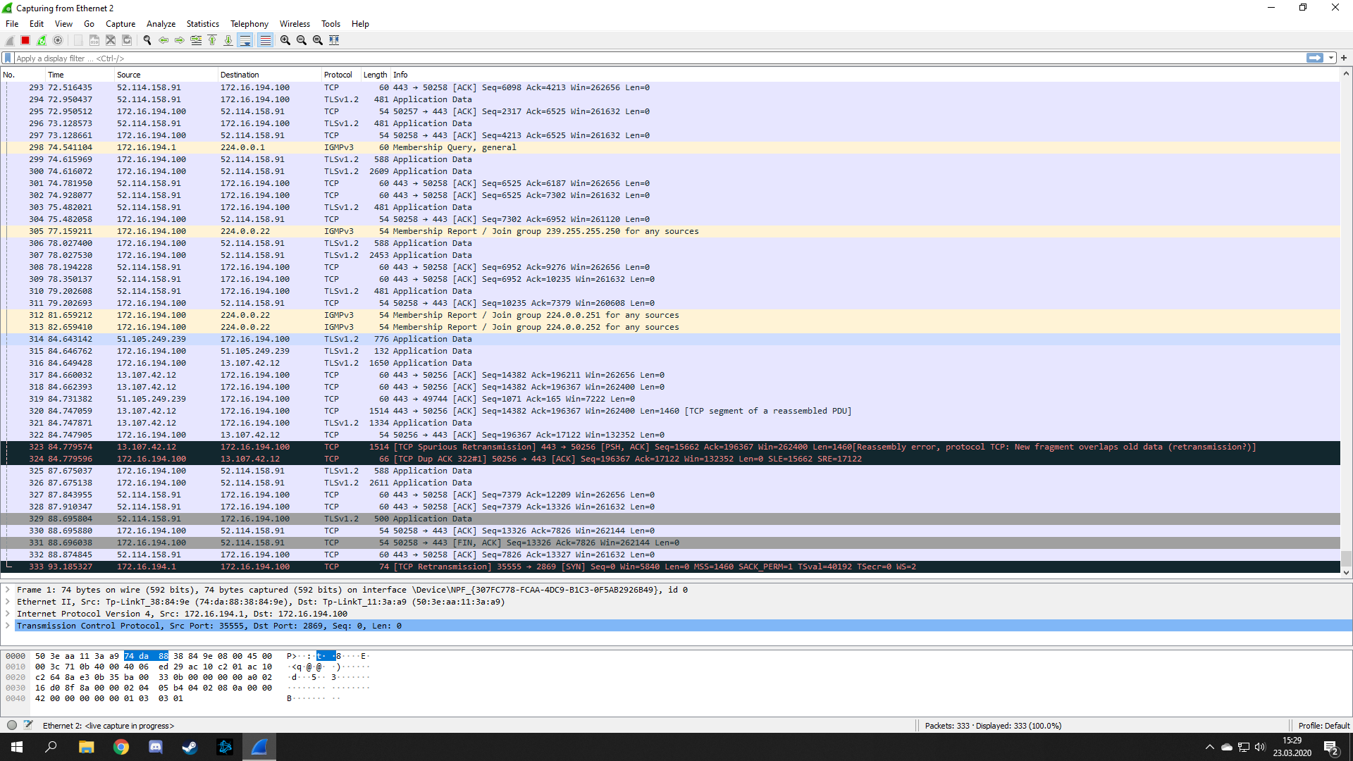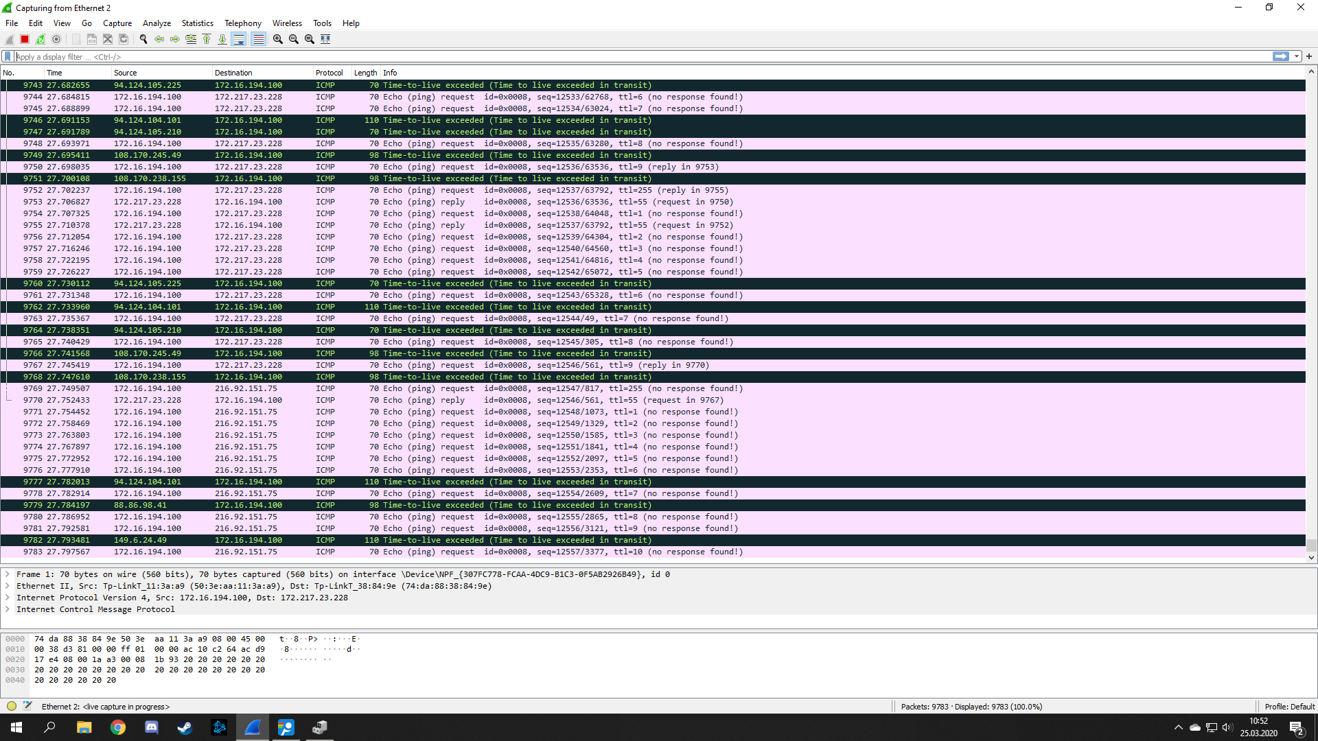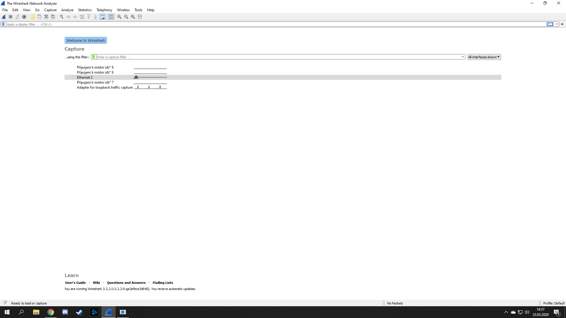 Dej sem prosím jen obyčejný wireshark, když nehraješ a internet funguje (třeba po restartu).