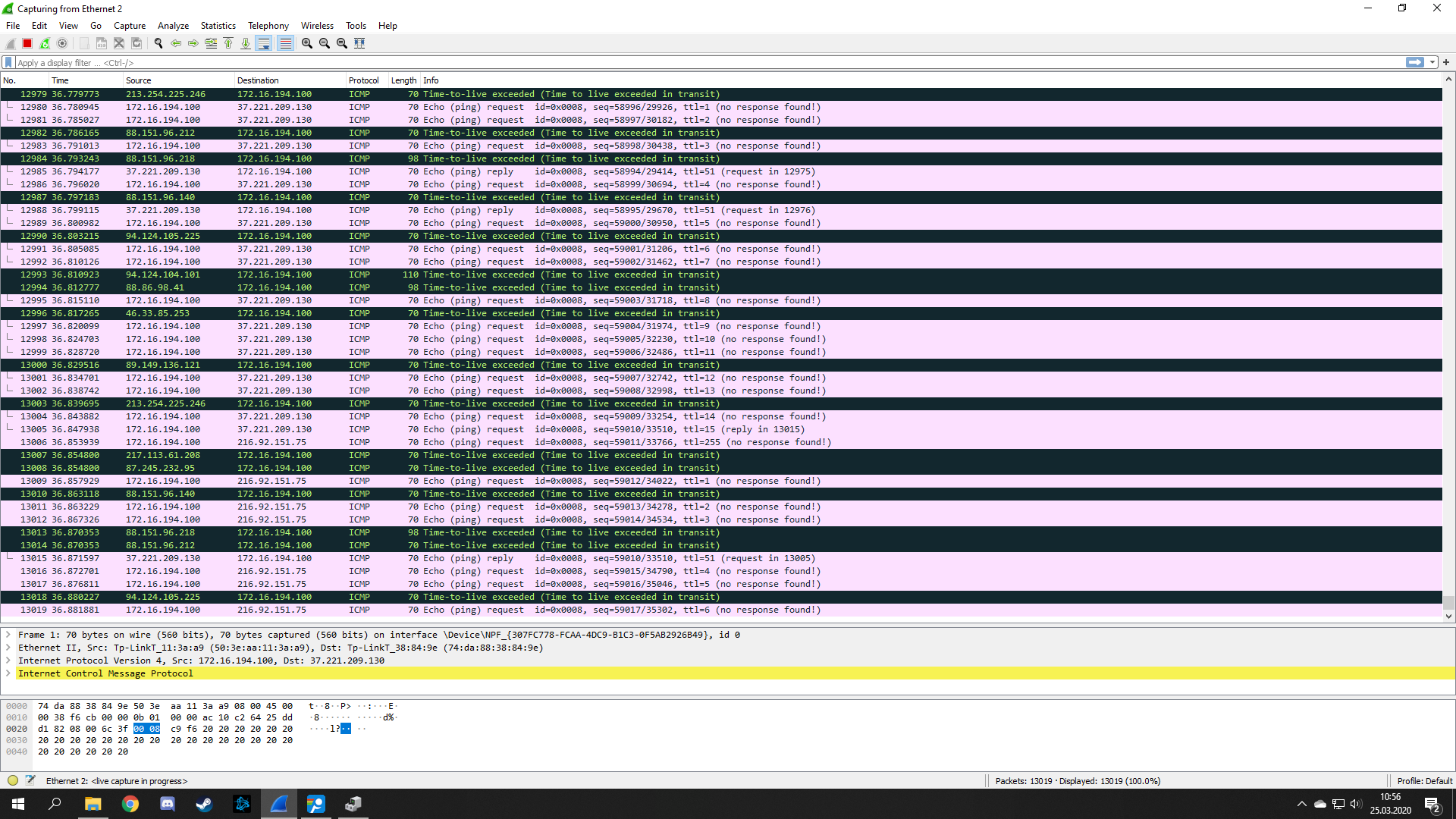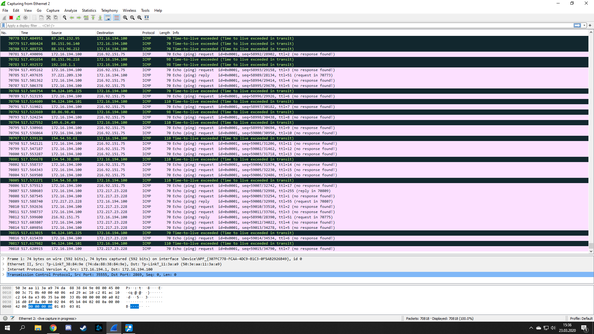 Zde je screen z Wiresharku, ale opravdu nevím jestli jsme ho pořídil správně.