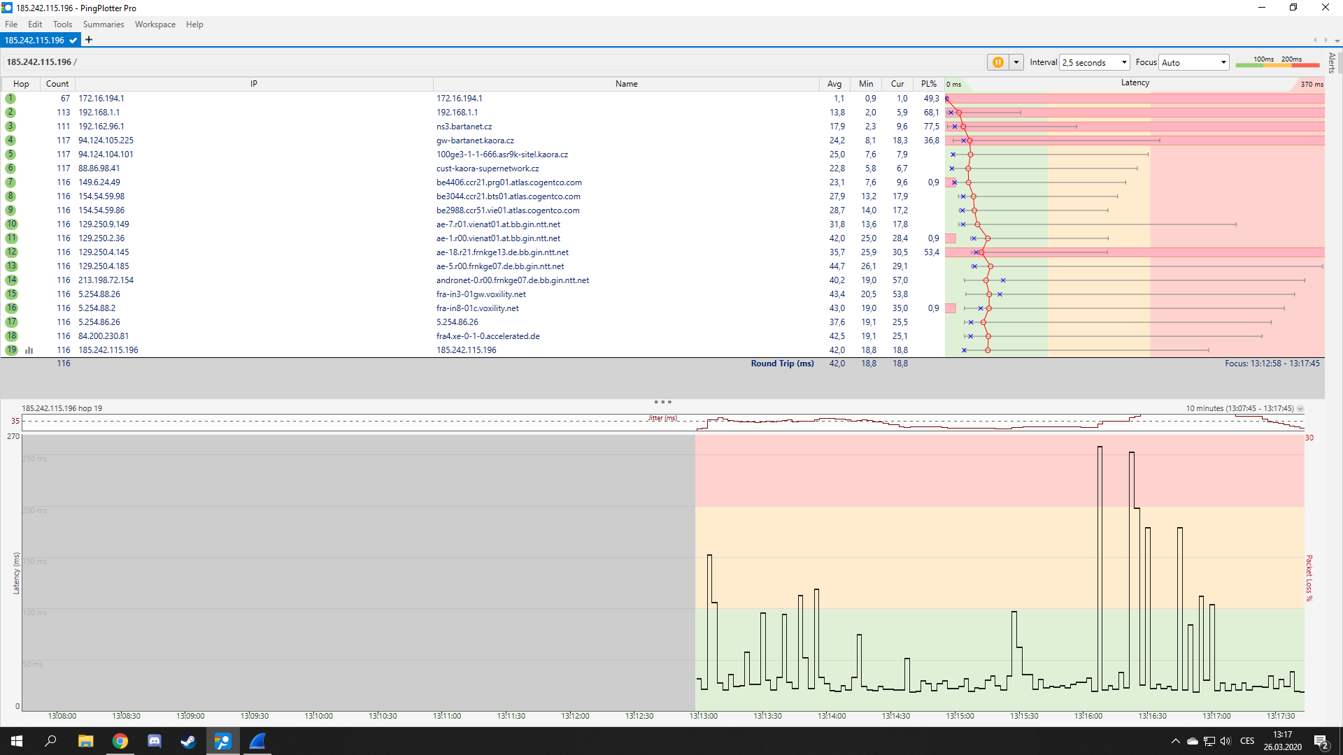 Jsou tam neprůchodné pingy na 37.221.209.130 a 217.11.249.84, oba jsou to Couter Strike servery.