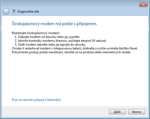 V diagnostice připojení na mě vykouklo tohle: No a teď internet zase už jede...