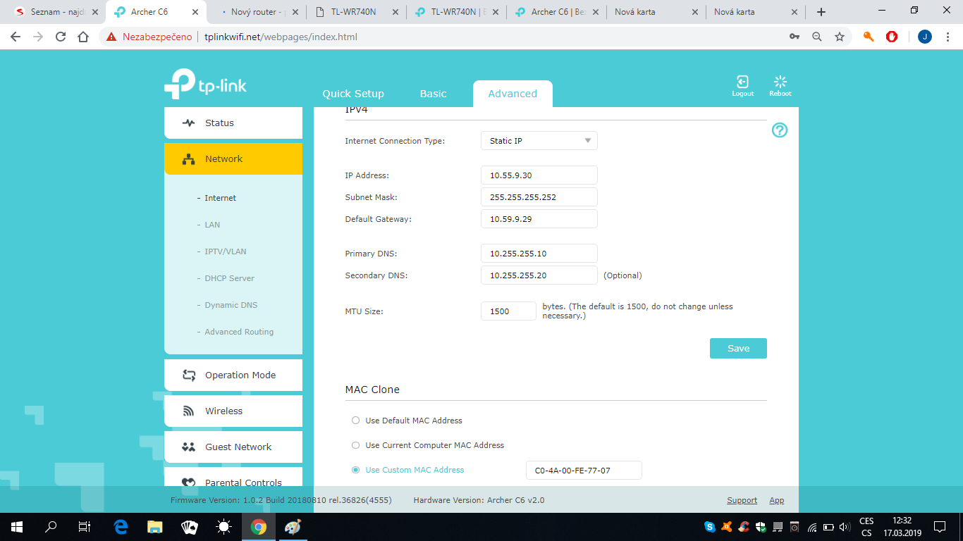 TP-LINK WR740NITCrowd píše:BTW co je zač, ten starý router?ITCrowd píše:Zjisti si od providera, jaké hodnoty máš nastavit a ty nastav.