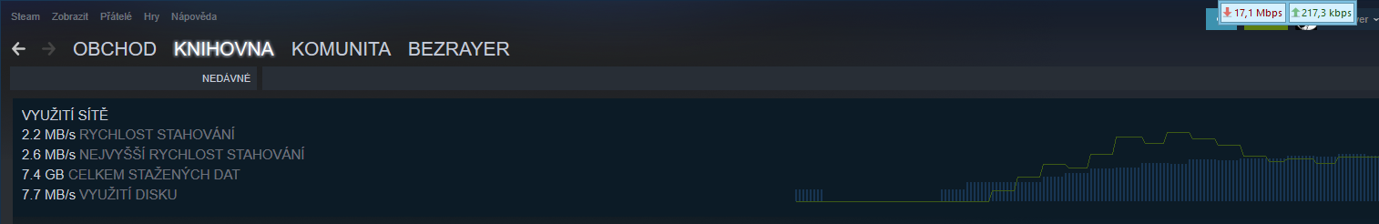 Pokud pustím stahování z jiné služby rychlost je stejná jako u testu. Jen steam jede takhle rychle.