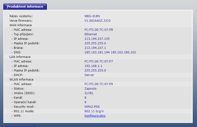 A ještě jedna věc, které jsem si všiml a nechápu - Proč je v konfiguraci routeru vůbec adresa 213.194.237.105 a 213.194.237.1, když se do routeru přihlašuji klasicky na 192.168.1.1? Pokud do URL zadám 213.194.237.10, tak jsem na naprotsto stejné konfiguraci jako u 192.168.1.1. To má jako router 2 IP?